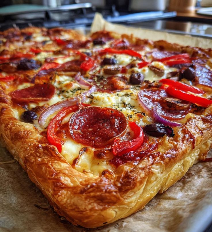 We’ve given pizza night a pastry twist with this easy-peasy recipe! Instead of a dough base, we’ve worked wonders with a sheet of ready-rolled light puff pastry. After pre-baking the pastry, you can get creative with your toppings. This pre-baking keeps it nice and crispy by the time your pizza tart is baked to perfection. There are no rules when it comes to toppings, try a different flavour combo every time you make it (it’s so tasty you’ll definitely be making it more